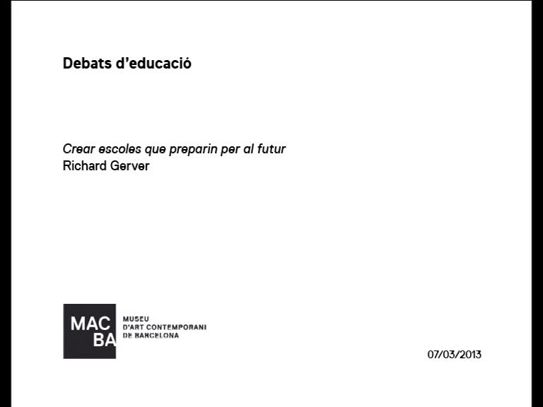 Enregistrament audiovisual realitzat amb motiu de l'activitat "Debats d'educació. Richard Gerver. "Crear escoles que preparin per al futur", celebrada al Museu d’Art Contemporani de Barcelona (MACBA), el 7 de març de 2013.
