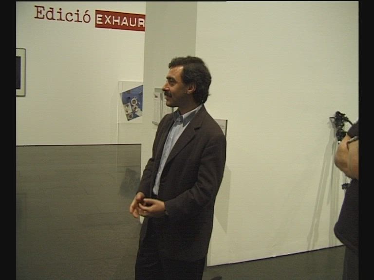 Enregistrament audiovisual de la visita comentada pel comisari de l'exposició "Edició exhaurida", Guy Schraenen, celebrada al MACBA Museu d'Art Contemporani de Barcelona el 26 d'octubre de 2001.