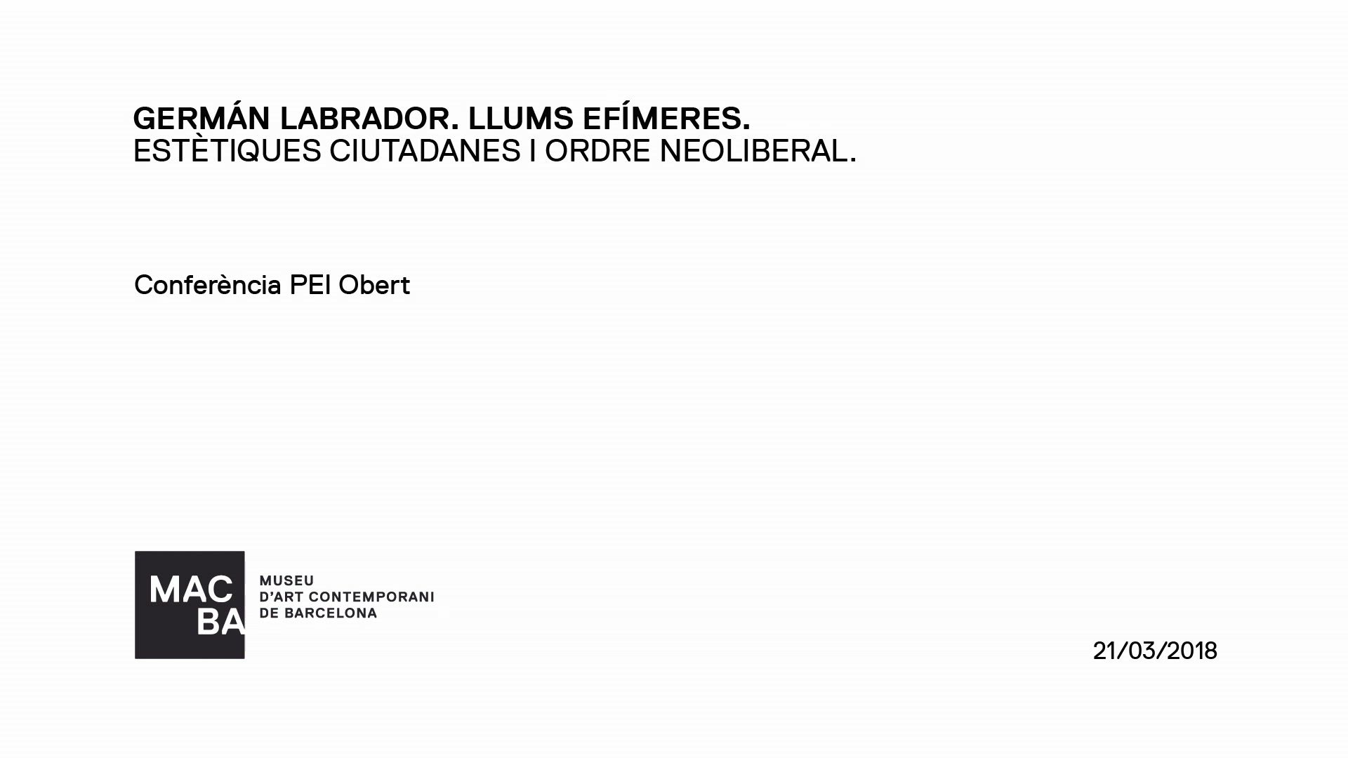 Germán Labrador. Llums efímeres. Estètiques ciutadanes i ordre neoliberal. Conferència PEI obert [Enregistrament audiovisual activitat]