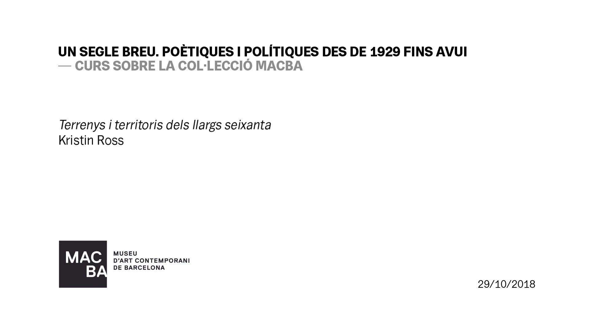 [DIG_A.HIS.05676_001 / Enregistrament audiovisual] A.HIS.05676 - Terrenys i territoris dels llargs seixanta -- Un segle breu. Poètiques i polítiques des de 1929 fins avui. Curs sobre la Col·lecció MACBA [Enregistrament audiovisual activitat] [enregistrament audiovisual], MACBA Museu d'Art Contemporani de Barcelona, Kristin Ross, Pablo Martínez, Departament de Programes Públics i Educació. MACBA, 29-10-2018