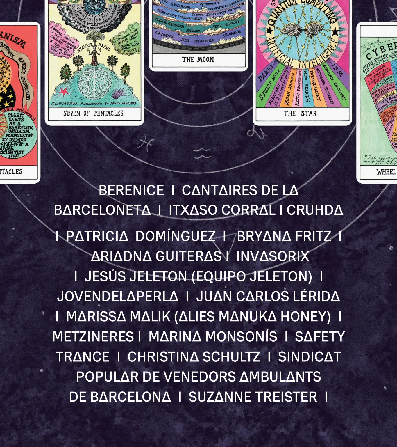 Pantalla directori realitzada amb motiu del programa "Invocacions. Programa d'encanteris, sortilegis i oracles", celebrada al MACBA Museu d'Art Contemporani de Barcelona, del 21 al 22 de juny de 2023.