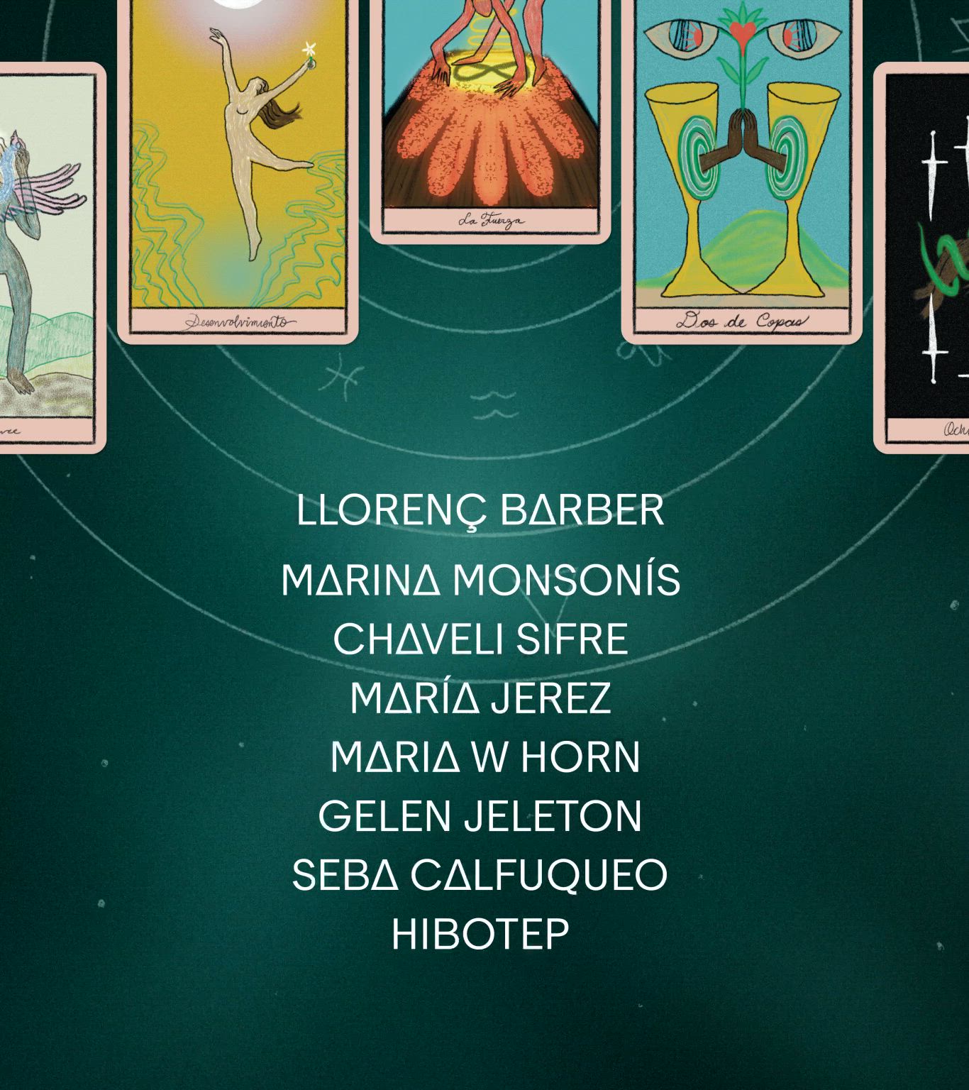 Pantalla directori realitzada amb motiu del programa "Invocacions. Programa d'encanteris, conjurs i oracles", celebrada al MACBA Museu d'Art Contemporani de Barcelona, del 26 al 28 de juny de 2024.