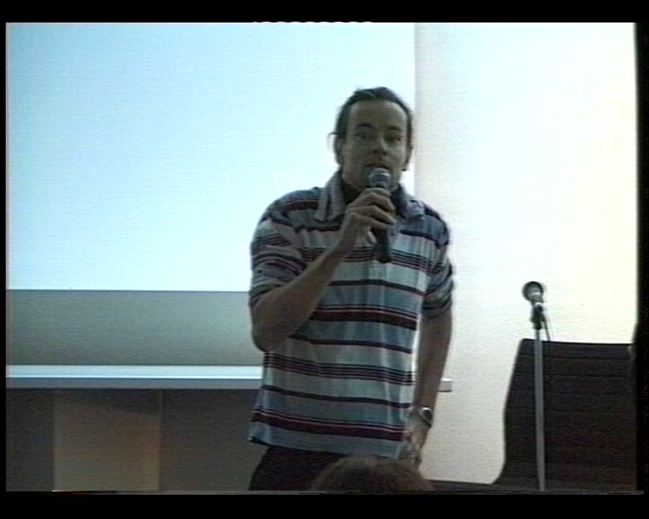 Enregistrament audiovisual de la sessió "Redefinicions de la imatge: pràctiques audiovisuals i art contemporani" a càrrec de Javier Codesal dins del curs d'art i cultura contemporanis "Condicions postmodernes", celebrada al MACBA Museu d'Art Contemporani de Barcelona, el 26 de novembre de l'any 2001.