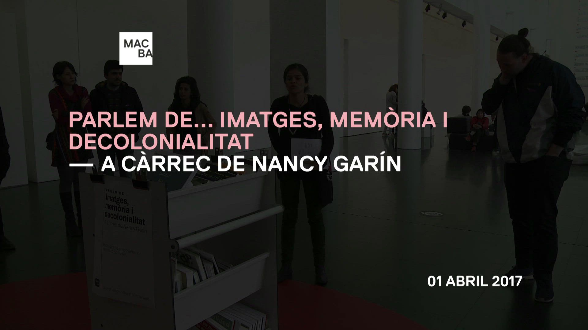 Enregistrament audiovisual de l’activitat “Hablemos de imágenes, memoria y decolonidad” a càrrec de Nancy Garín i realitzada amb motiu del programa “Parlem de...”, celebrada al Museu d’Art Contemporani de Barcelona (MACBA), l'1 d’octubre de 2017.